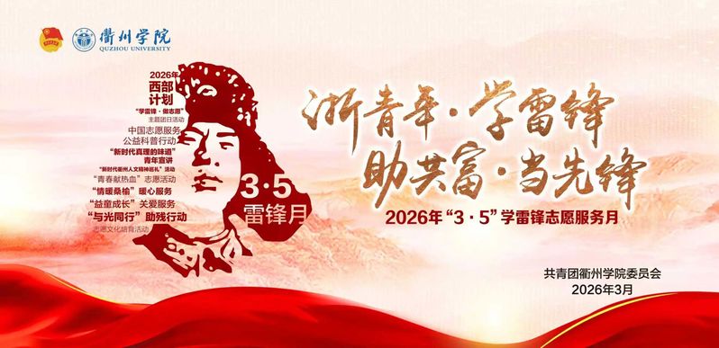 今年3月5日是第63个“学雷锋纪念日”,也是第27个“中国青年志愿者服务日”,为认真学习贯彻习近平总书记关于弘扬雷锋精神的重要论述和深入开展学雷锋活动的重要指示批示精神,传承弘扬“奉献、友爱、互助、进步”的志愿精神,衢州学院2026年“3・5”学雷锋志愿服务月正式开启,九大志愿活动等你来参与,用行动诠释奉献与担当!