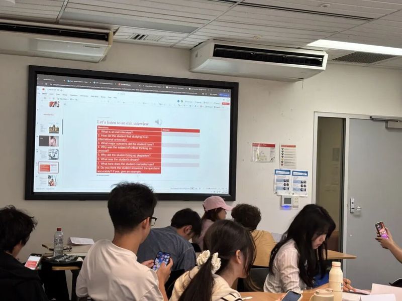 学术英语课程则聚焦批判性思维、学术写作与高效沟通三项核心能力。教师在课堂上设置开放性议题,引导学生围绕技术伦理、人工智能社会影响等专业相关话题展开观点讨论,在思辨中锤炼逻辑表达与论证能力。25级机器人工程专业的沈婉婷认为这门课程与以往接触的英语教学模式有很大不同:“它更强调表达的严谨性,要求我们阅读学术文献、遵循写作规范。课堂上的密集互动让我真正体会到用英语进行专业交流的感觉。”22级学前教育专业方思琪收获了许多成长,她说:“课堂上,我逐渐适应了全英文授课的节奏,从最初的不敢开口,到后来能够主动跟随老师的思路,尝试与同学交流讨论。这种转变让我明白,很多时候只需要勇敢迈出第一步。”