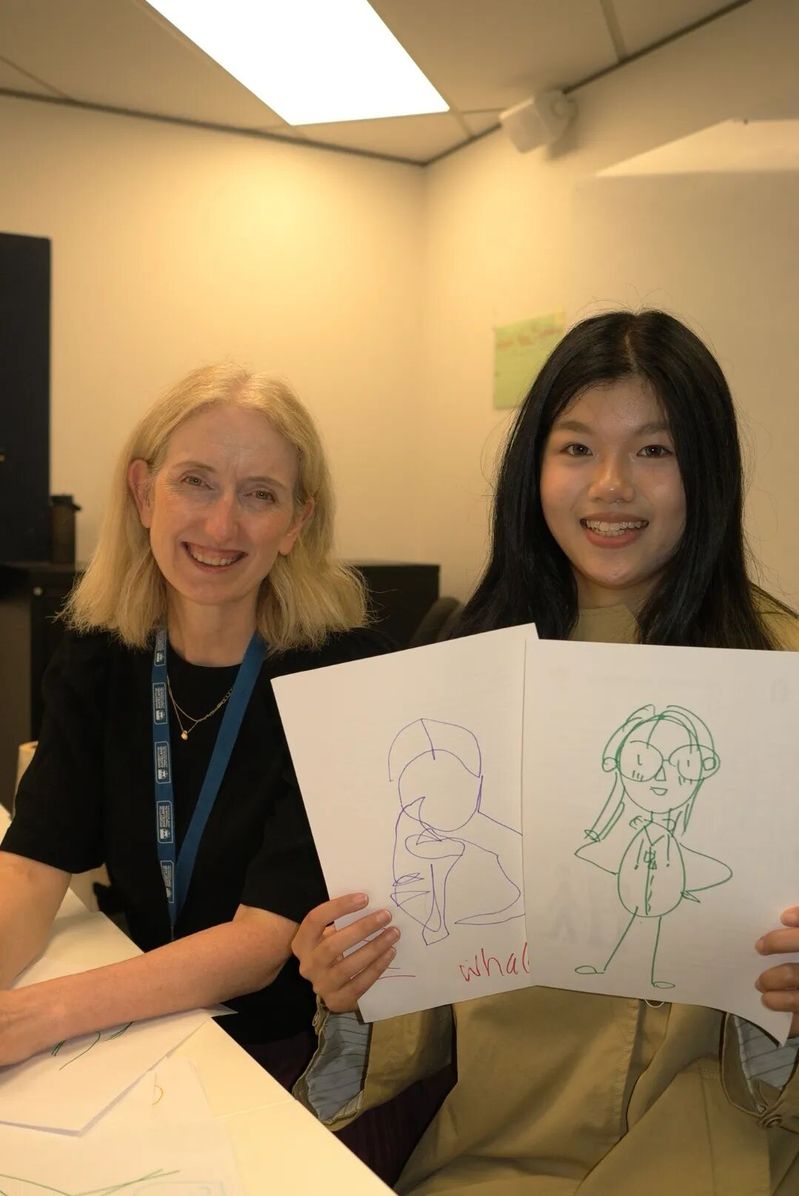 23级学前教育专业的赵翎伊经过几周学习,变得更加敢说了。在一次美术工作坊中,她和来自不同国家的同学互相画肖像画,课堂变成了画室,语言在笑声中自然流淌。她发现,当注意力从“语法对不对”转移到“怎么让对方理解你的意思”时,英语不再是令人紧张的考试科目,而成了真正的沟通工具。