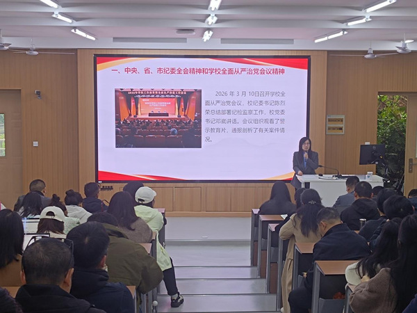 学院纪委书记曾闽传达学习中央、省、市纪委全会精神和学校全面从严治党会议精神,通报剖析了6起高校领域典型违纪违法案例,全面总结学院纪委2025年工作,从强化政治监督、开展日常监督、加强廉洁文化建设、推进勤廉单元建设、加强纪律建设等五个方面,部署学院纪委2026年重点工作任务。